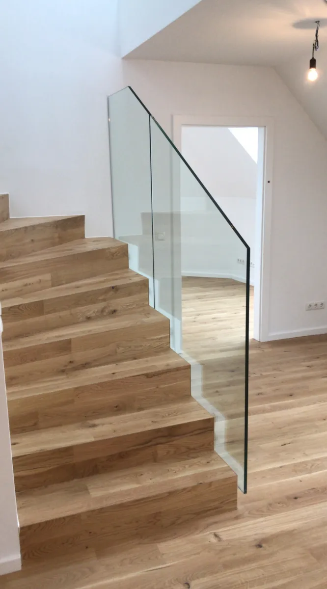 Mach dein Treppenhaus zur Licht-Oase. Wo früher dunkle Holzgeländer den Raum eng machten, sorgt Glas für offene Sichtachsen und lässt deinen Flur doppelt so groß wirken.
